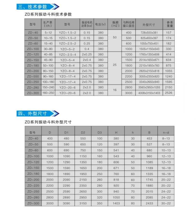 ZD系列振动料斗以振动电机为激振源。设备具有工作时运转平衡、噪声低、结构简单、使用方便、不需维修、寿命长等优点,和其它类型振动料斗相比。本系列振动料斗工作时排料连续稳定在(±5%)以内。若将振动电机两端的偏心块相位角调整后,即可改变振动电机的激振力,便能获得满意的排料流量,停止振动电机工作后,科流自行停止。配用电控箱可以实现定时定量排料。